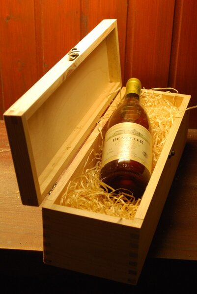verpackt in Holzkiste mit Holzwolle