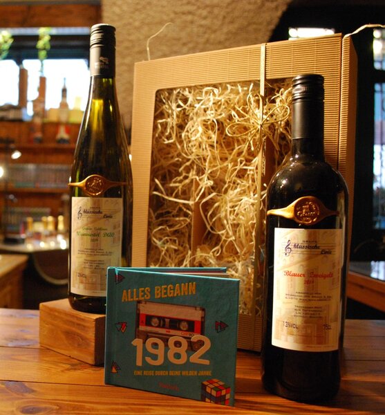 Mit Jahresbuch "Alles begann". Kleines Büchlein als Zeitreise, mit Platz für Widmung auf der ersten Seite.
