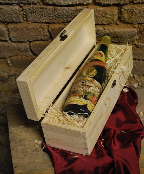 verpackt in Holzkiste mit Holzwolle