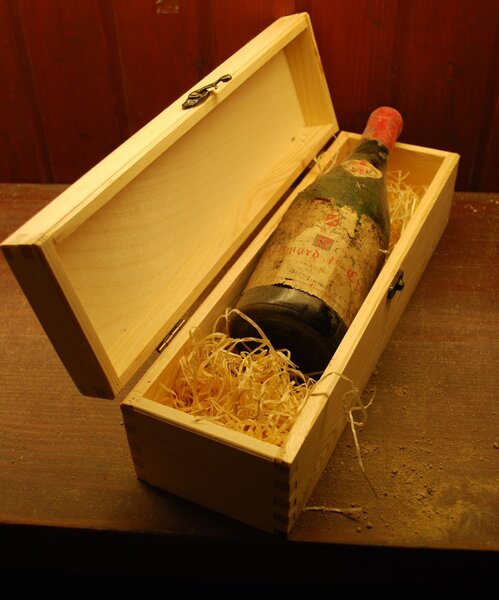 verpackt in Holzkiste mit Holzwolle